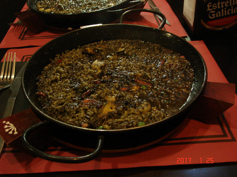 夕飯はもちろん、パエリア(イカ墨)