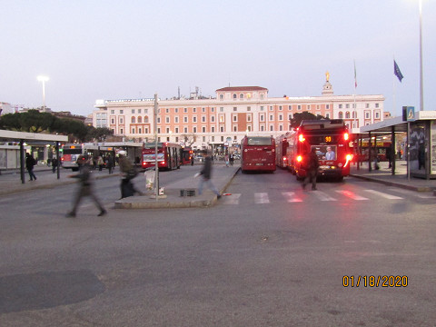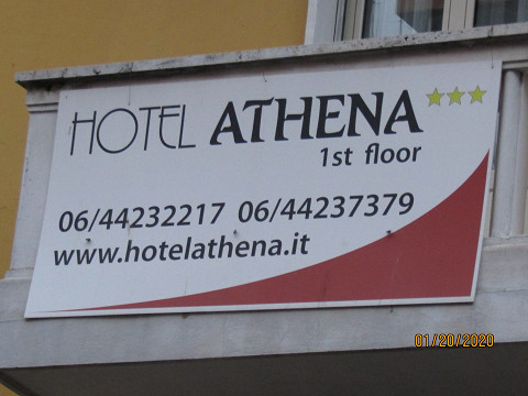 2020.1.16(木) ドーハ着4:50 ドーハ発8:45-ローマ着12:55 ローマ・フィウミチーノ空港 ブルマン(T.A.M社) - テルミニ駅 €7 テルミニ駅 タクシー - ホテルアテナ チェックイン 15:30